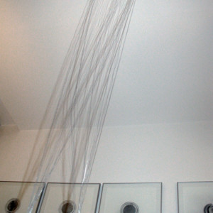 Acier, fil métallisé, 27 x 27 x 170 cm et 65 x 65 cm