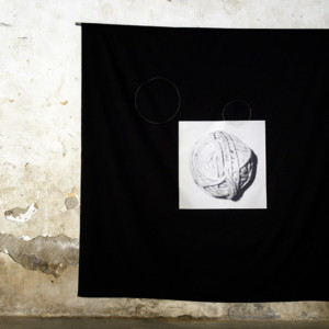 2013 Photographies sur toile 20 x 30 cm, 30 x 30 cm et 280 x 280 cm, fil métallisé Créations à partir du lieu et vues de l’exposition Synchronies Photographies de l’exposition : Pascal Servera